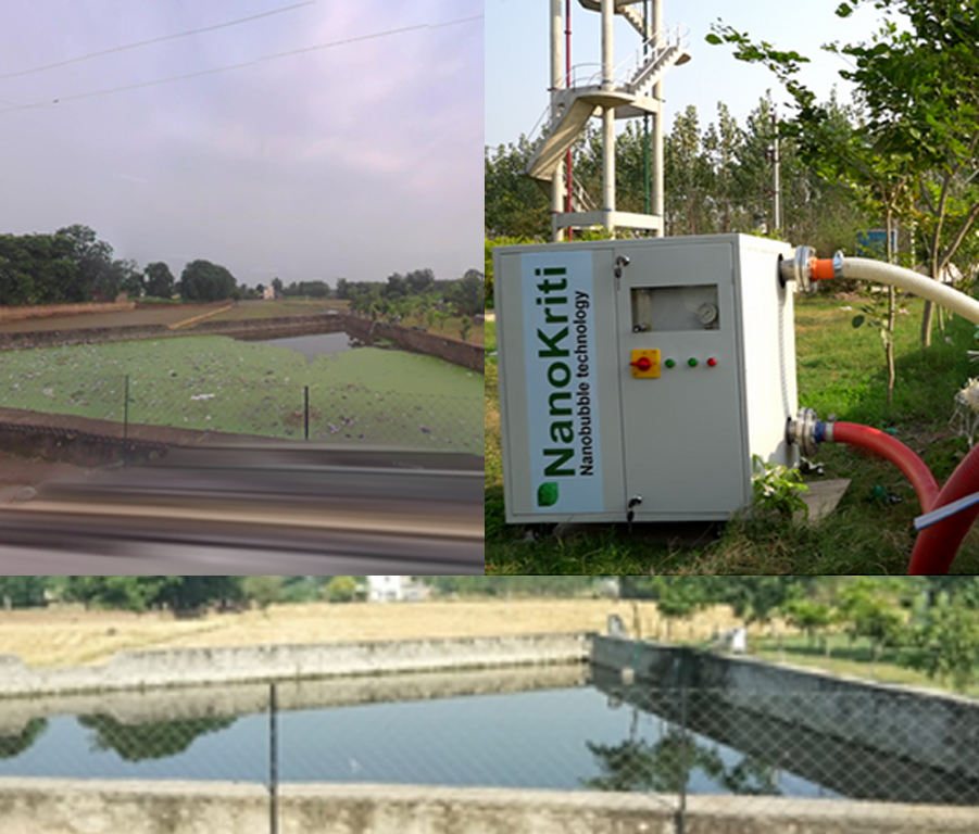 Since the installation of the Nanokriti Nanobubble Generator in Phool kalan’s Pond, the village has witnessed a remarkable transformation in water quality. The sewage pond, once plagued by foul odors, high organic pollution, and low oxygen levels, now shows significant improvement in Dissolved Oxygen (DO), reduced Biochemical Oxygen Demand (BOD) & Chemical Oxygen Demand (COD), and clearer water.
