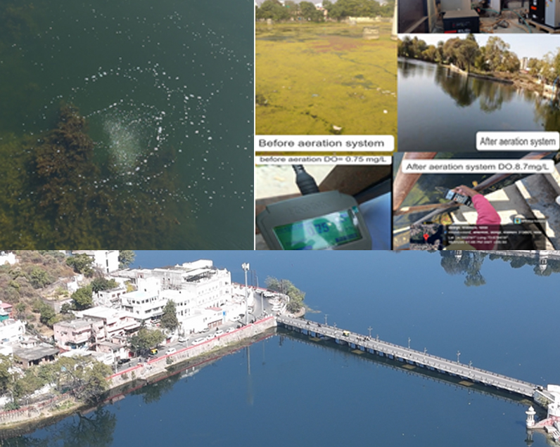 Rangsagar Lake, a historic and ecologically significant water body in Udaipur, had been facing severe water quality deterioration due to rapid urbanization, untreated wastewater discharge, and excessive organic matter accumulation. The key issues included Insufficient oxygen levels, threatening aquatic life, Excessive organic pollutants leading poor water quality, Hydrogen sulfide and ammonia emissions creating an unbearable smell. Eutrophication and frequent algal blooms disrupting the ecosystem and Polluted waters reducing the lake’s appeal as a tourist destination. Recognizing the need for an eco-friendly and sustainable water treatment solution, Nanokriti Nanobubble Technolgy installed the NanoAqua N-500 Nanobubble Generator at Rangsagar Lake. This cutting-edge system functions by Generating ultra-fine oxygen nanobubbles that remain suspended in water, ensuring prolonged oxygenation, Oxidizing Hydrogen Sulfide (H₂S) & Ammonia, effectively eliminating the foul odor,Reducing BOD & COD Levels, breaking down organic pollutants naturally, preventing Algal Blooms, restoring he lake’s ecological balance,